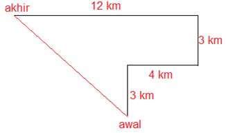 Nana akan melakukan perjalanan ke sebuah tempat menggunakan mobil. Mobil yang dikendarai Nana berjalan lurus ke arah utara sejauh 3 km, berbelok ke timur sejauh 4 km, kemudian berbelok kembali ke utara sejauh 3 km, dan terakhir berbelok ke barat sejauh 12 km. Jika Nana berangkat pada pukul 09.00 dan sampai di tempat tujuan pukul 09.45, maka kecepatan rata-rata mobil yang dikendarai Nana mendekati nilai ….