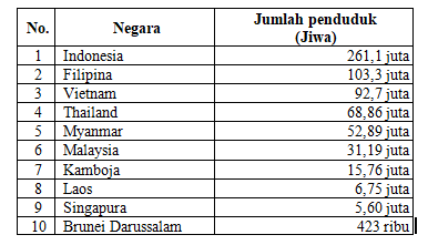 Negara di ASEAN yang paling sedikit jumlah penduduknya yaitu….