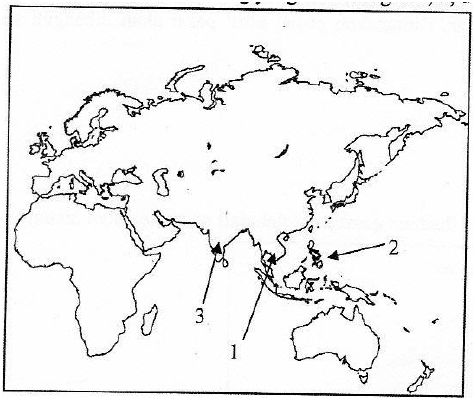 Negara-negara berkembang yang diberi angka 1, 2, dan 3 pada peta adalah …