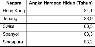 Negara yang berada di peringkat teratas di dunia dalam angka harapan hidup pada tahun 2017 adalah ….