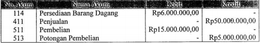 Dalam data penyesuaian persediaan barang dagang sebesar Rp4.000.000,00.