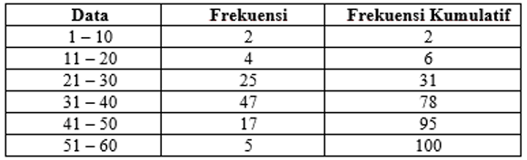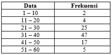 Nilai dari Q1 pada tabel di bawah ini adalah ....