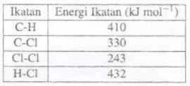 Nilai energi ikatan rata-rata untuk beberapa ikatan diberikan pada tabel berikut.
