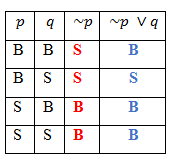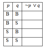 Nilai kebenaran dari pernyataan majemuk yang dinyatakan pada tabel berikut adalah ....