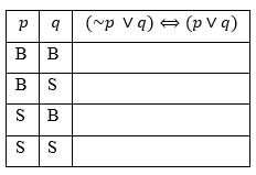 Nilai kebenaran dari pernyataan majemuk yang dinyatakan pada tabel berikut adalah ....