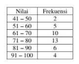 Nilai Matematika 40 siswa disajikan dalam tabel di atas. Modus dari data pada tabel adalah.…