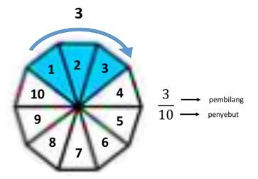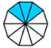 Nilai pecahan bagian berwarna biru pada bangun datar di atas adalah….
