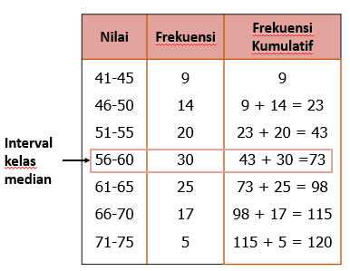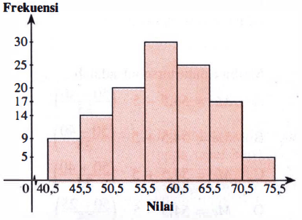 Nilai ujian Bahasa Indonesia disajikan dalam histogram berikut.