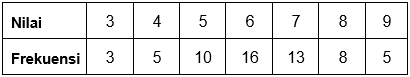 Siswa dinyatakan lulus jika nilai ujiannya di atas nilai rata-rata. Banyaknya siswa yang lulus ada ... siswa.