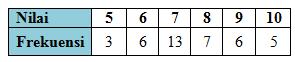 Nilai ujian mata pelajaran matematika disajikan dalam tabel berikut.