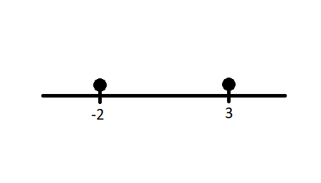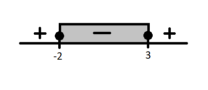 (x−3)(x+2)⇒((0)−3)((0)+2)=(−3)(2)=−6<0