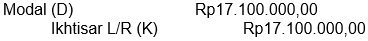 Pada 31 Januari 2021 salon Narisa memperoleh pendapatan sewa sebesar Rp12.600.000,00 dan pendapatan jasa rias dua kali lipat dari pendapatan sewa. Pada akhir periode akuntansi telah diperhitungkan total beban sebesar 55% dari total pendapatan yang diperoleh. Pencatatan jurnal penutupan akun ikhtisar laba/rugi salon Narisa adalah ....