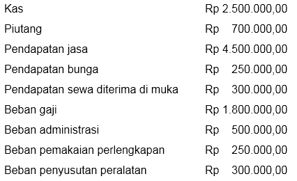 Pada akhir tahun 2014 usaha bengkel Maju mempunyai data sebagai berikut: