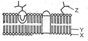 Pada bagian struktur membran berikut ini, bagian yang ditunjukkan X, Y, dan Z secara berurutan adalah ...