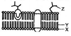 Pada bagian struktur membran berikut ini, bagian yang ditunjukkan X, Y, dan Z secara berurutan adalah ...