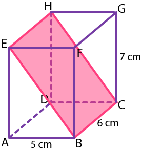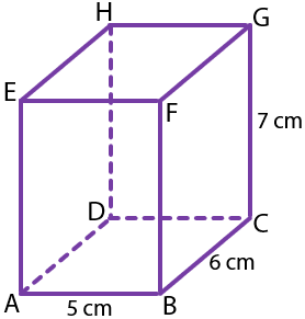 Balok ABCD.EFGH dengan ukuran 5 cm × 6 cm × 7 cm dapat digambarkan sebagai berikut.