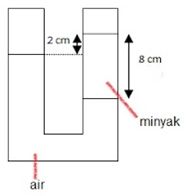 Pada bejana U terdapat air dan minyak yang ditunjukan oleh gambar.