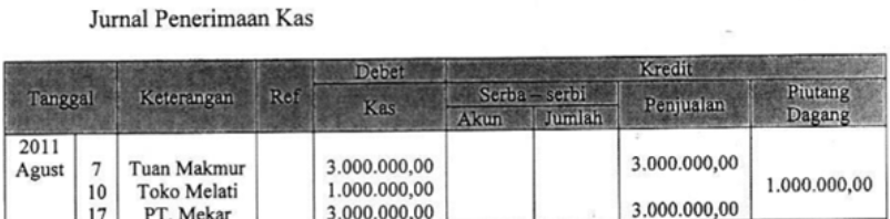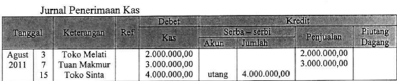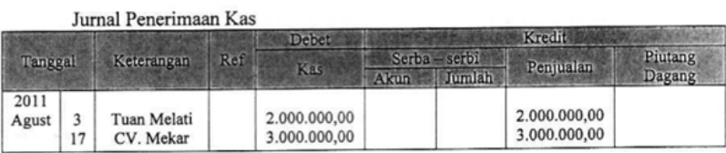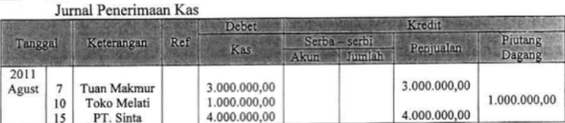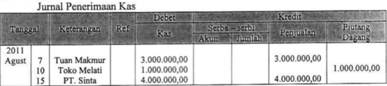 Transaksi di atas dicatat dalam jurnal khusus penerimaan kas yang tepat adalah....