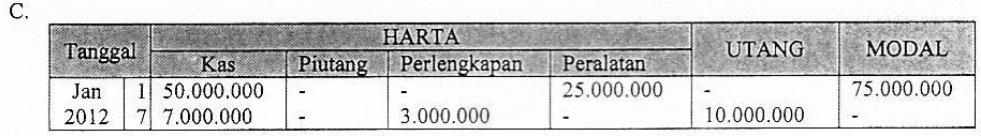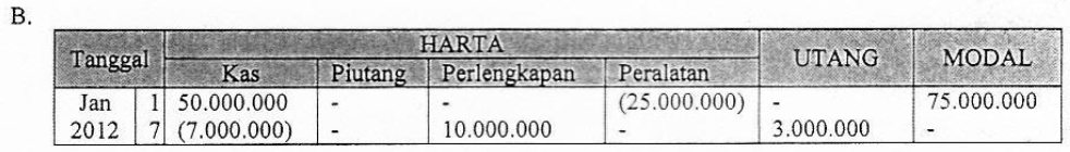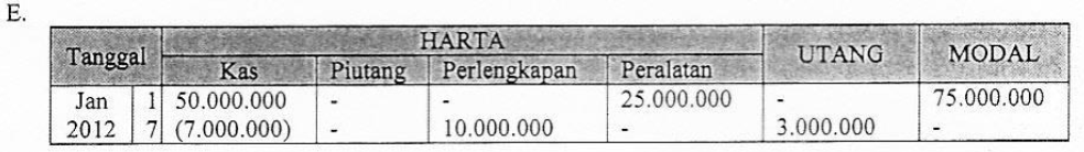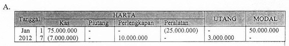 Pada Bulan Januari 2012 Tn. Amir mendirikan salon "Cantik" dengan transaksi awal sebagai berikut: