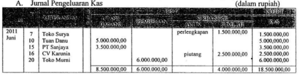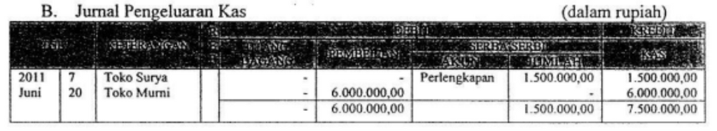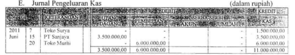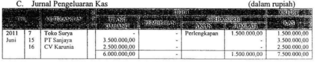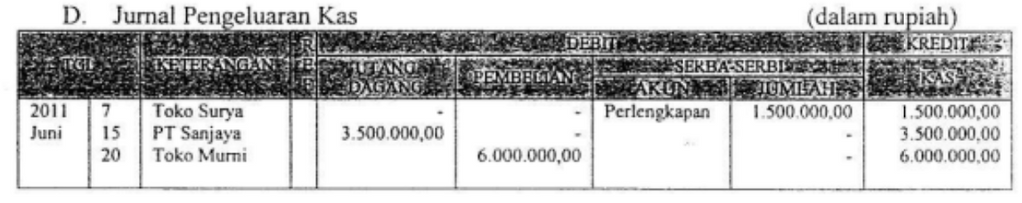 Transaksi di atas, dicatat dalam jumal khusus pengeluaran kas yang tepat adalah ....