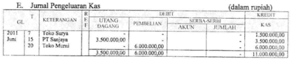 Tanggal 20 : Dibeli barang dagang dari Toko Murni seharga Rp6.000.000,00 secara tunai