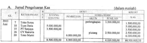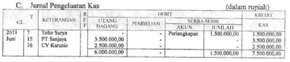 Transaksi di atas, dicatat dalam jurnal khusus pengeluaran kas yang tepat adalah...