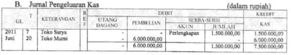 Tanggal 7 : Dibeli perlengkapan dari Toko "Surya" sebesar Rp1.500.000,00 secara tunai