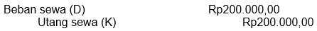 Pada daftar saldo per 31 Desember 2017, terdapat akun beban sewa Rp1.800.000,00. Pada tanggal 31 Desember 2017 masih terutang sewa Rp200.000,00. Ayat jurnal penyesuaian per 31 Desember 2017 yang dibutuhkan adalah ....