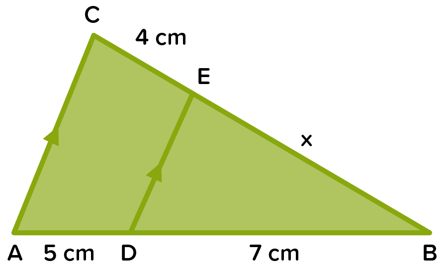 Pada , diketahui AC // DE. Jika panjang BE = x, maka nilai x adalah ....