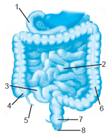 Pada gambar di bawah, bagian yang berfungsi sebagai tempat penyerapan air di sisa makanan adalah nomor....