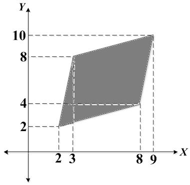 Pada gambar di bawah ini, daerah yang diarsir merupakan himpunan penyelesaian pertidaksamaan linear. Nilai maksimum (5x+4y) dengan x, y pada daerah himpunan penyelesaian tersebut adalah….