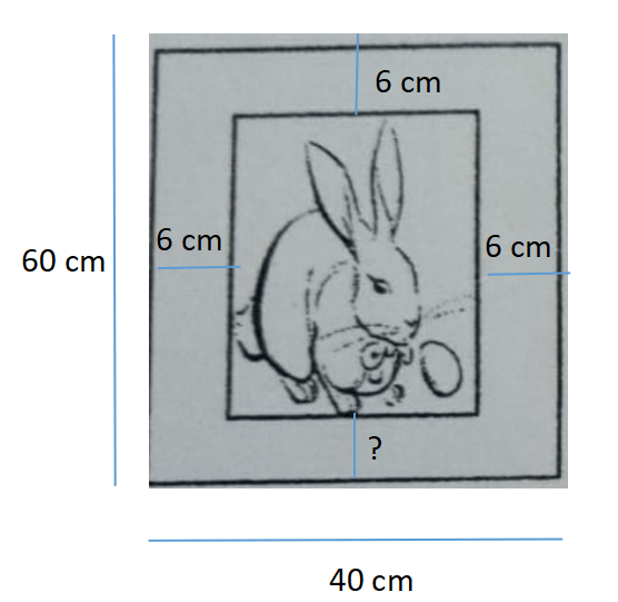 Pada gambar di bawah sebuah foto diletakkan di atas selembar kertas karton berukuran 60 x 40 cm. Disebelah kiri, atas, dan kanan foto masih terdapat karton dengan lebar 6 cm. Jika karton dan foto sebangun, tentukan lebar karton di sebelah bawah