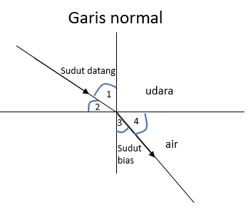 Pada gambar di bawah yang termasuk sudut bias adalah ....