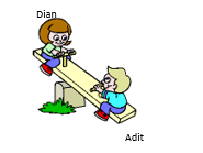 Pada gambar di samping, berat Dian … dibandingkan dengan berat Adit. Kalimat yang sesuai untuk melengkapi titik-titik tersebut adalah….