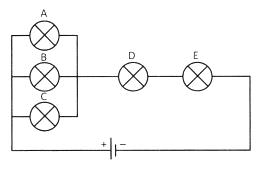 Pada gambar rangkaian listrik di bawah ini, A, B, C, D, dan E merupakan lampu pijar identik.
