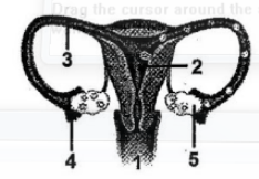 Pada gambar reproduksi wanita, pertemuan ovum dengan sel sperma terjadi di dalam bagian ....