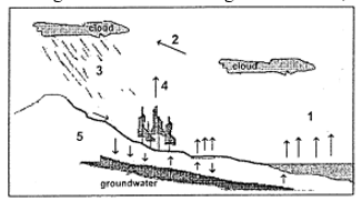 Pada gambar siklus hidrologi di bawah ini, nomor 2 adalah proses....