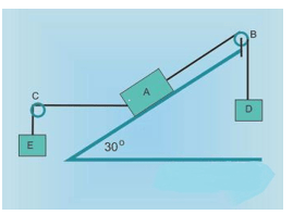 Pada gambar sistem katrol berat benda A dan E masing-masing 100 N dan 10 N.