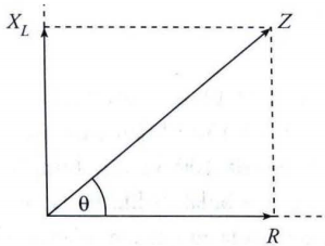 Pada hubungan seri, hambatan R dan induktor L dalam rangkaian arus bolak-balik menghasilkan impedansi Z seperti gambar.