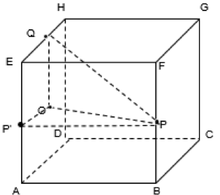 Pada kubus ABCD.EFGH dengan panjang rusuk 2a, jika titik P merupakan titik tengah BF dan titik Q adalah titik tengah EH, maka panjang PQ = …(SPMB 2004)
