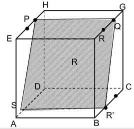 Pada kubus ABCD.EFGH dengan panjang rusuk 6 cm titik P pada EH dengan perbandingan EP : EH = 2 : 3, titik Q pada FG dengan perbandingan FQ : QG = 2 : 1. Titik R terletak pada garis FG dengan perbandingan FR : RG = 1 : 2, lalu titik R’ adalah proyeksi R pada ABCD. Luas irisan bidang pada kubus yang melalui titik PQR’ adalah…
