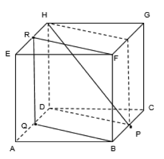 Pada kubus ABCD.EFGH dengan panjang rusuk 6 cm, titik P, Q dan R masing – masing terletak di tengah rusuk BC, AD dan EH. Jarak dari garis HP ke bidang FBQR adalah…