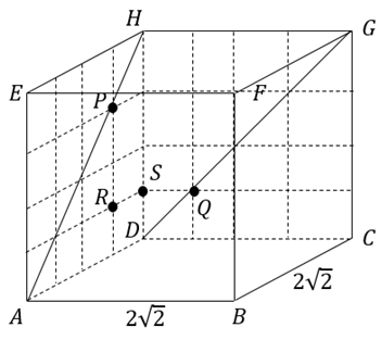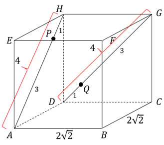 Pada kubus ABCD.EFGH dengan panjang rusuk cm, titik P berada di AH sehingga AP : PH = 3 : 1, kemudian Q pada DG sehingga DQ : DG = 1 : 4. Jarak titik P ke titik Q adalah … cm.