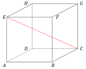 Pada kubus ABCD.EFGH dengan panjang rusuk , jarak titik C dengan titik E adalah … cm.