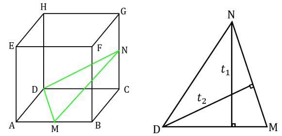 Pada kubus ABCD.EFGH dengan panjang rusuk , titik M adalah pertengahan rusuk AB dan titik N adalah pertengahan rusuk CG. Jarak titik N ke garis DM adalah ....