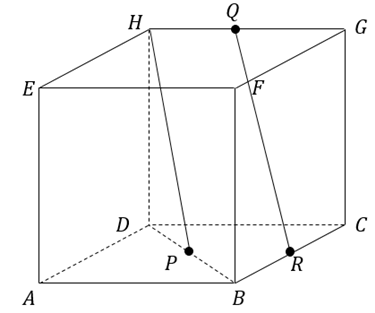 Pada kubus ABCD.EFGH dengan panjang rusuk , titik P, Q dan R masing-masing berada di tengah ruas garis BD, GH, dan BC. Jarak garis HP dan QR adalah … .