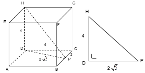 Pada kubus ABCD.EFGH dengan rusuk 4 cm, jika P di tengah BC maka jarak HP adalah…