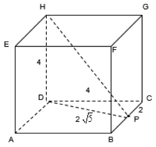 Pada kubus ABCD.EFGH dengan rusuk 4 cm, jika P di tengah BC maka jarak HP adalah…