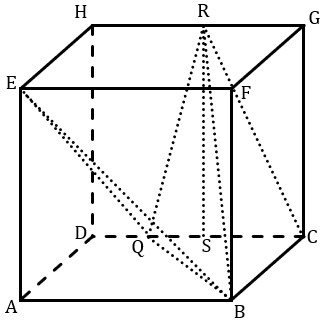 Pada kubus ABCD.EFGH, titik Q pada CD sehingga DQ : DC = 1 : 4. Jika R terletak pada garis GH, maka perbandingan volume