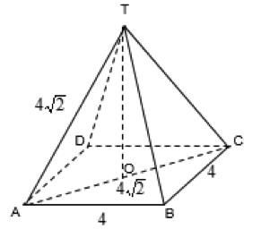 Pada limas segi empat T.ABCD diketahui bahwa alasnya berbentuk persegi dengan sisi 4 cm. Kemudian diketahui juga bahwa TA = TB = TC = TD = 4cm. Jarak dari titik T ke garis AC adalah … cm.